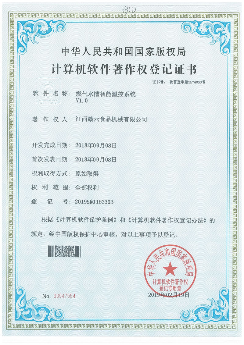 計算機軟件著作權(quán)登記證書(燃氣水槽智能溫控系統(tǒng))