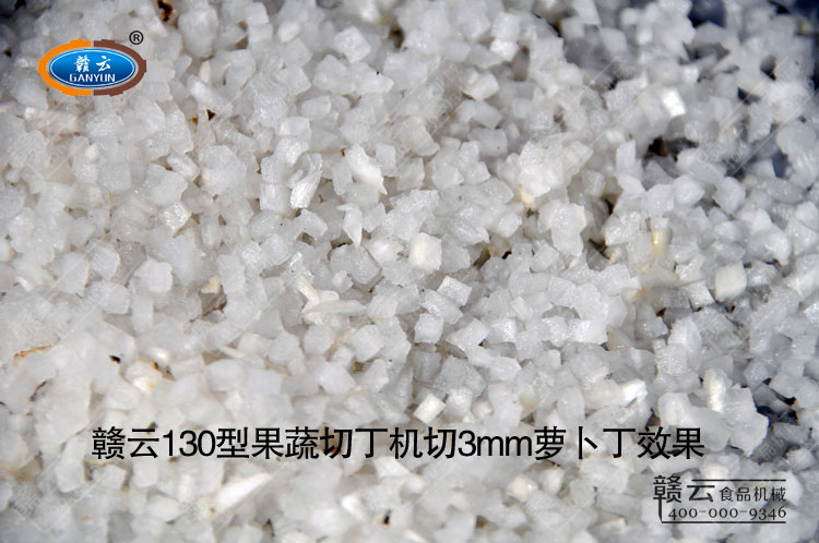 客戶定制贛云牌130型果蔬專業切丁機3mm規格切丁刀組用于加工蘿卜,在原來130果蔬切丁機基礎上改進,考慮到3mm規格間隙較小,有可能會堵塞切絲刀組,固而需對切絲刀組做特殊處理,切絲刀組采用帶齒加硬鋼材,以便蘿卜絲能順利通過切絲刀組到達切丁刀組切成丁,產品設計出來只是第一步,是否能夠用于實際加工生產,還需進行實踐:試機體驗,故而就有了我們今天看到的這一幕切丁效果!