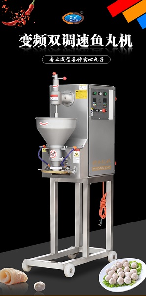 多功能調速肉丸成型機 是一款可調速的自動雙刀旋轉成型肉丸、魚丸、素丸等實心丸子成型設備。這臺設備可以生產市面上大多數肉圓子,配備多種規格切刀和變頻調速功能,使其更加方便操作和靈活使用,做出來的肉圓子成型效果圓滑、規格統一。