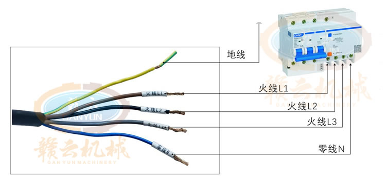 1、機(jī)器放水平地面上,讓機(jī)器設(shè)備整體平穩(wěn)、所有支撐腳都接觸到地面,對設(shè)備進(jìn)行搖晃測試后不會出現(xiàn)搖晃現(xiàn)象。請將三相四線安全正確接入空氣開關(guān)內(nèi),并確保該空氣開關(guān)或閘刀保險容量符合設(shè)備功率運轉(zhuǎn)。(空氣開關(guān)63A以上為佳)