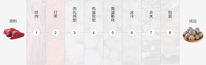 接下來我們來了解一下這條由贛云機械研發制造的牛肉丸加工流水線的標準流程: