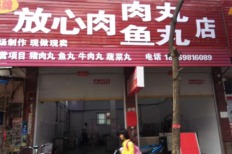 河南省信陽市羅山縣放心肉肉丸魚丸店,主營豬肉丸、魚丸、牛肉丸機蔬菜丸,秉承現場加工現做現賣,2016年10月2日達成設備采購,贛云全程策劃布局,工藝師上門傳授,并于2016年10月18日成功開張大吉。