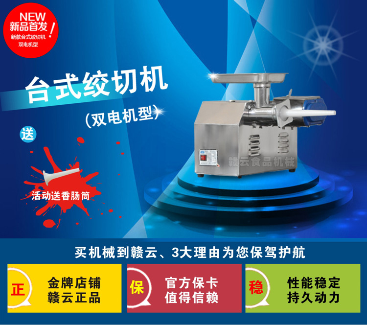 臺(tái)式電動(dòng)絞肉機(jī)的設(shè)計(jì),可以放在桌上,絞肉機(jī)占地面積小,使用方便,可供您的需求選擇各種型號(hào)的絞肉機(jī),采用高級(jí)的不銹鋼材料,堅(jiān)固耐用,質(zhì)量高,故障率低,維修方便快捷的大型絞肉機(jī)、自動(dòng)絞肉機(jī)適合任何賓館、餐廳、飯店、食堂絞制肉泥,主要是通過螺桿交料斗中的原料肉推擠到絞刀箱中的預(yù)切孔板處、電動(dòng)絞肉機(jī)利用轉(zhuǎn)動(dòng)的切刀刃和孔板上孔眼刃形成的剪切作用將肉切碎,并在螺桿擠壓力的作用下,將肉粒不斷排出孔板處,鮮肉絞肉機(jī)頭部及盛肉托盤可以很方便的拆卸,全自動(dòng)絞肉機(jī)造型優(yōu)美,精細(xì)研磨設(shè)計(jì),清洗方便、質(zhì)量上乘、價(jià)格低,廠家直銷,深受全國(guó)用戶的青睞和支持,更大的絞肉機(jī)可以來電咨詢?cè)斍椤?/FONT>