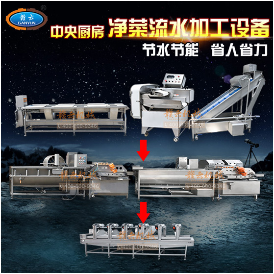 贛云掌握中央廚房凈菜設(shè)備核心技術(shù),本套設(shè)備由分選輸送設(shè)備、數(shù)字多元化切配設(shè)備、提升機(jī)設(shè)備、渦流臭氧清洗去農(nóng)藥殘留設(shè)備、高頻振動機(jī)、渦流清洗機(jī)、風(fēng)干機(jī)等組合而成。