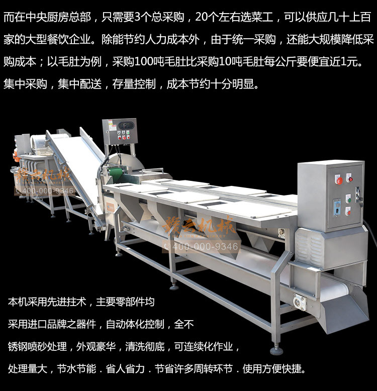 “無刀化”管理廚房設備切洗配生產線主要從蔬菜清洗,切割,分配等環節,以及肉類加工設備等,使用設備從安全角度考慮優先選擇設備。