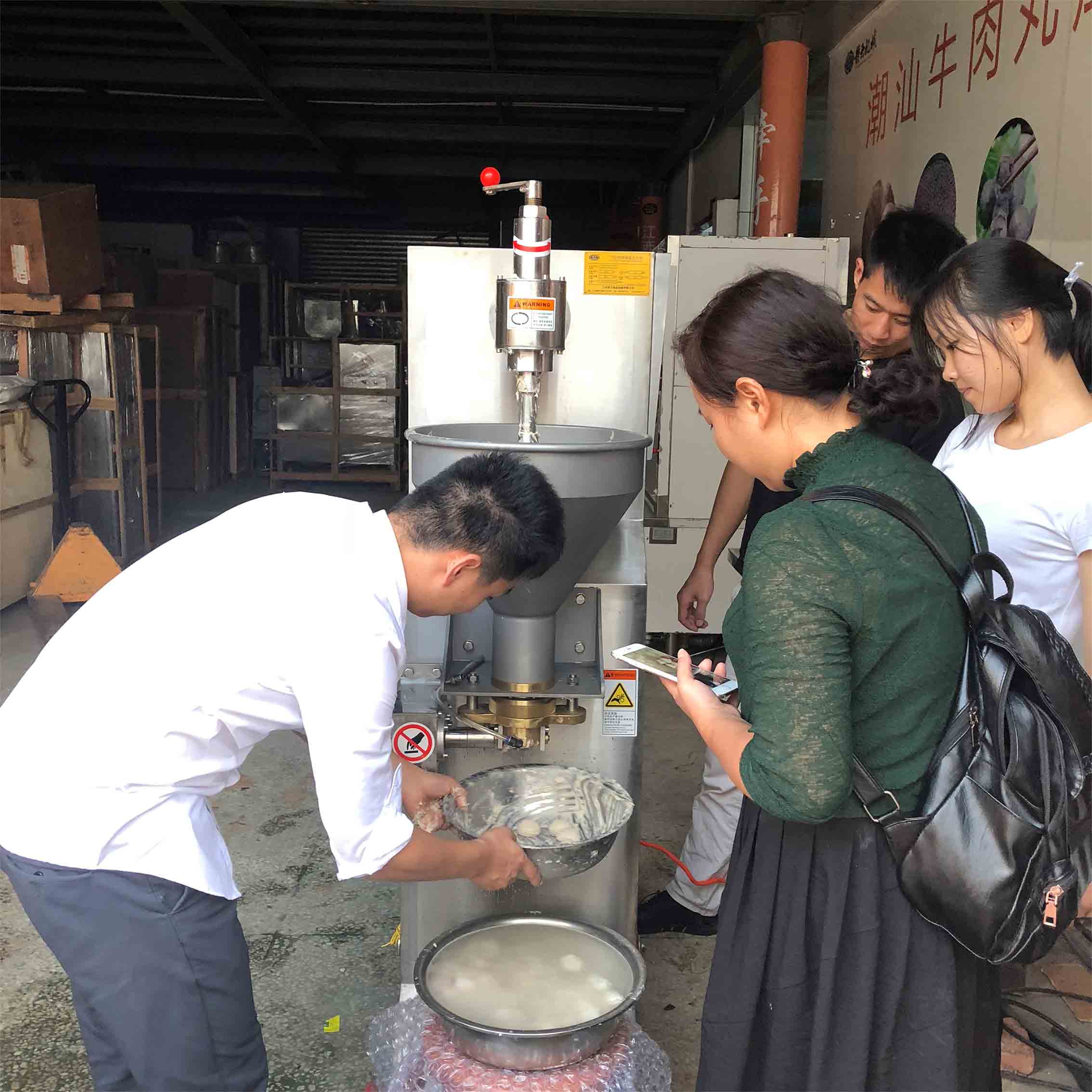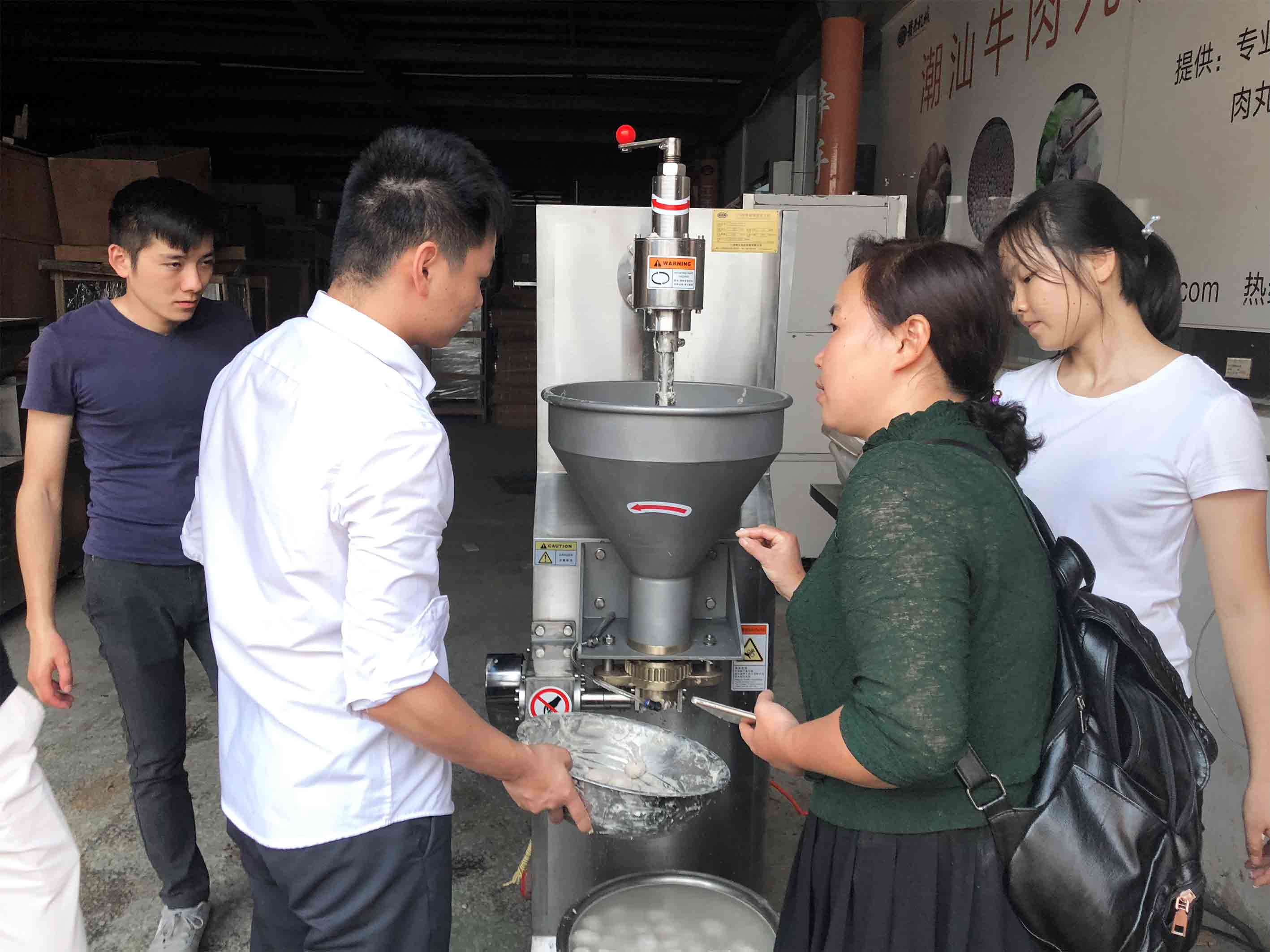 就在昨天,湖北的客戶聞名遠(yuǎn)道而來,帶著自家的肉丸配方,試用贛云的28型傳動式打漿機(jī)和170貢丸成型機(jī)兩款機(jī)器后,客戶表示,贛云牌28型傳動打漿機(jī),打出來的漿體細(xì)膩,嫩化,更主要的是這款機(jī)器可以外圈可以加冰制冷,這樣可以保證肉丸的口感。170貢丸機(jī)成型圓度統(tǒng)一,成型速度相對其他機(jī)器比較快,材質(zhì)厚實(shí)。適合客戶自家品牌丸子的要求。客戶試機(jī)的當(dāng)天下午就付了兩臺機(jī)器的全款。