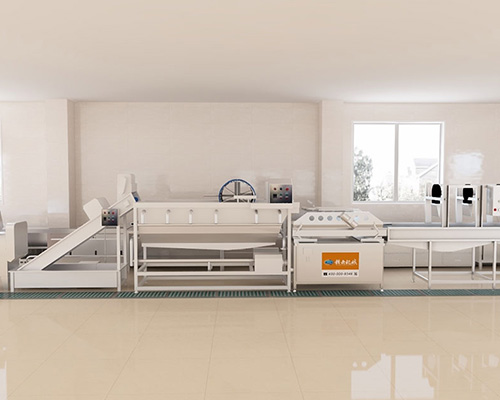 球根莖流水線的大致運行流程:首先先將食材通過浸泡提升機浸泡后在輸送到-脫皮機中加工脫皮-后面通過分選機的人工分選,將不合格的食材挑選出來-分選機將合格的食材輸送到切絲機或切片機等切菜機器中加工處理-再由提升機將加工好的食材輸送到漂洗,漂洗有多多道工序,通過渦流振蕩清洗和臭氧清洗后,再次通過震蕩清洗和過濾,最后進入震動風(fēng)干機去除表面水分。