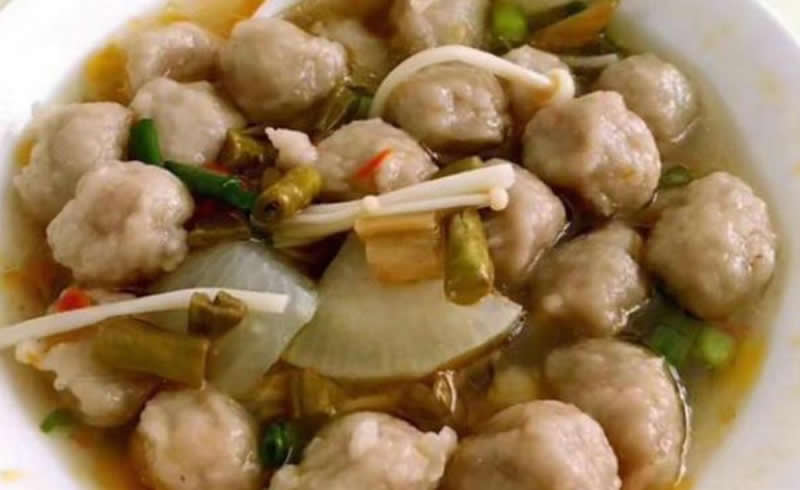 寧都肉丸是江西省贛州市寧都縣的傳統(tǒng)名菜,屬于客家菜。制作原材料主要是豬肉、魚肉、苦瓜、淀粉等。